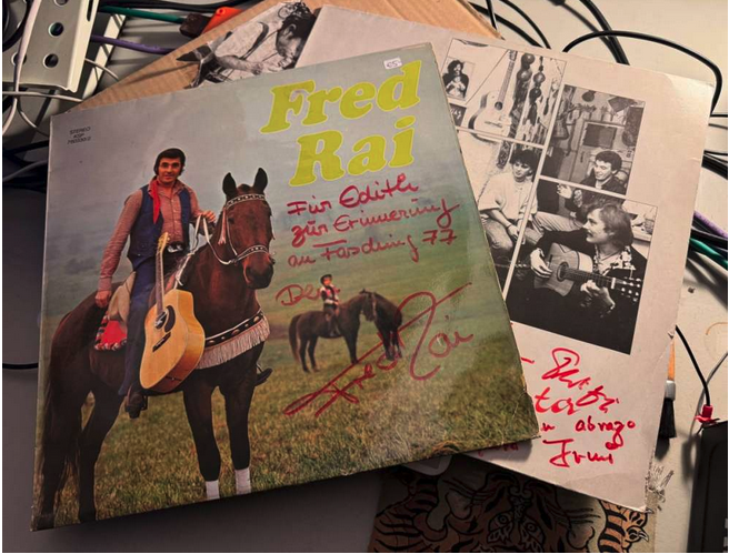 Hannes, (stayFM.com radio), tells me there’s a 2nd hand vinyl store around the corner where there’s a box containing records released by local artists. So it’s my first outing after setting up and oh… he’s not wrong. The box is large and I finally walk away with these. Fred Rai?! What a discovery. Yer genuine crooning/rock a-long cowboy songs, but all in German. Kind of brilliant. Apparently he lives in the countryside outside of town and has a small ranch set up with horses and cowboy hats and the entire lone on the range vibe.