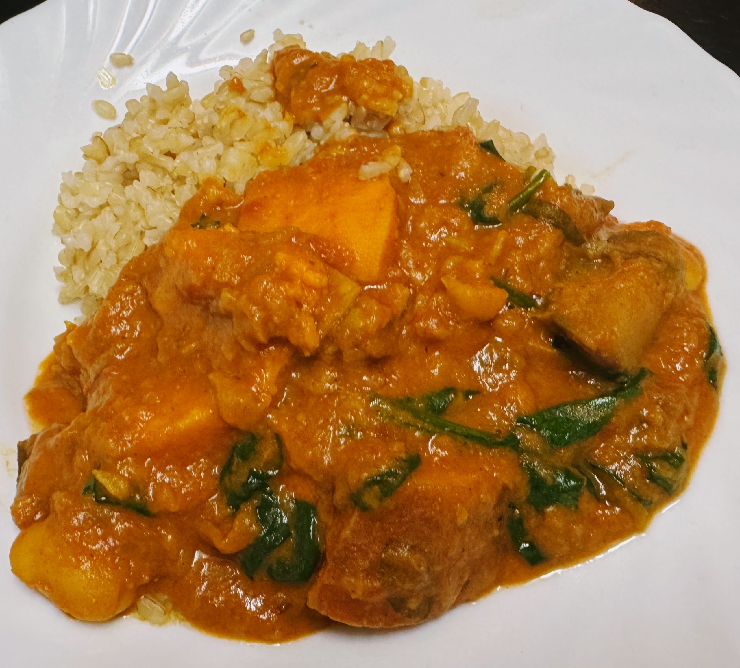 Shocked to realise that I’d forgotten how to make maafe, (learnt from Aissetou in Petit Kandé, Ziguinchor). Or is it that I am using peanut butter from DM, I have no bright red peanut oil or juicy fat chillis and garlic bought by the clove at the market that morning, and that I’m using sweet potato, tomatoes and aubergine from Aldi? At least my French brain has re-emerged and the maafe will be better next time.