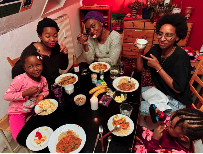 I’ve cooked vegan maafe for my new GHC family, all of whom have already been in the studio for us to talk and share our heritage and stories around why/how are we in Augsburg? Everyone speaks French, having heritage from Benin and Senegal or growing up in France. I spent three life changing months in Senegal when I was 25 after which I had a bolt of an epiphanic realisation that my mission on planet Earth was to be a musician. I haven’t looked back, and haven’t yet returned there, but suddenly, it seems I am reconnecting with my African core. Awake at dawn I decided that I was African in a former life. But of course Kaffe ! laughs Salome when I tell here this a few days later, ‘We are all African inside!’