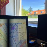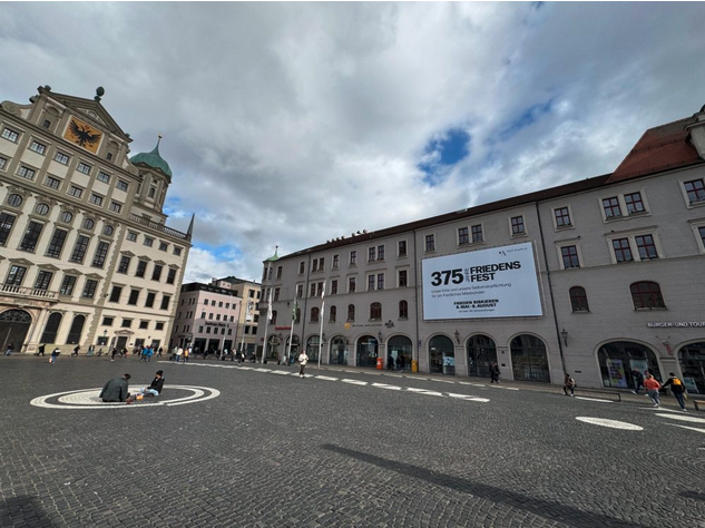 I’m back at Grandhotel, Augsburg to complete the bike opera. It’s good to be out of the safety of the Berlin studio and back into the reality of the outside and that peculiar sound world that is Augsburg. Often too so spectacularly quiet. Now my mixing for this mobile moving sound system, the sonic bike, gets real and the hard work begins. Once over the precipice and into the audio unknowns of the street, where the lack of control and random collisions can be embraced and not found infuriating, then the brilliance and essence of bicrophonic composition can begin. However, here, now in the Rathausplatz, the central city square where the Friedensfest banner is displayed huge with the reality of our coming event, I can’t help but feel a little daunted. Yes, our bike opera will open, free for everyone, from here, midday Thursday 19.06.25. That suddenly seems much too soon.